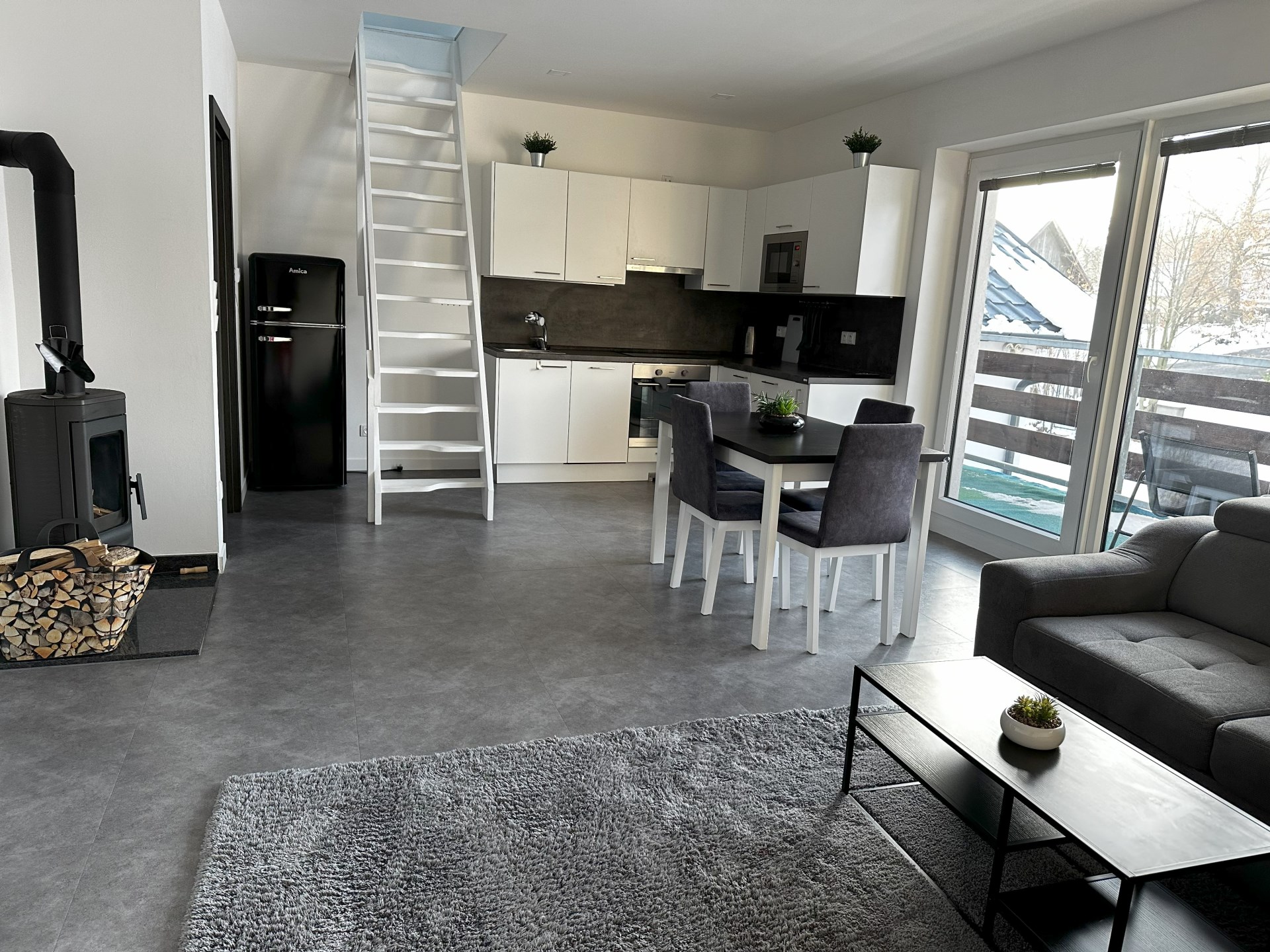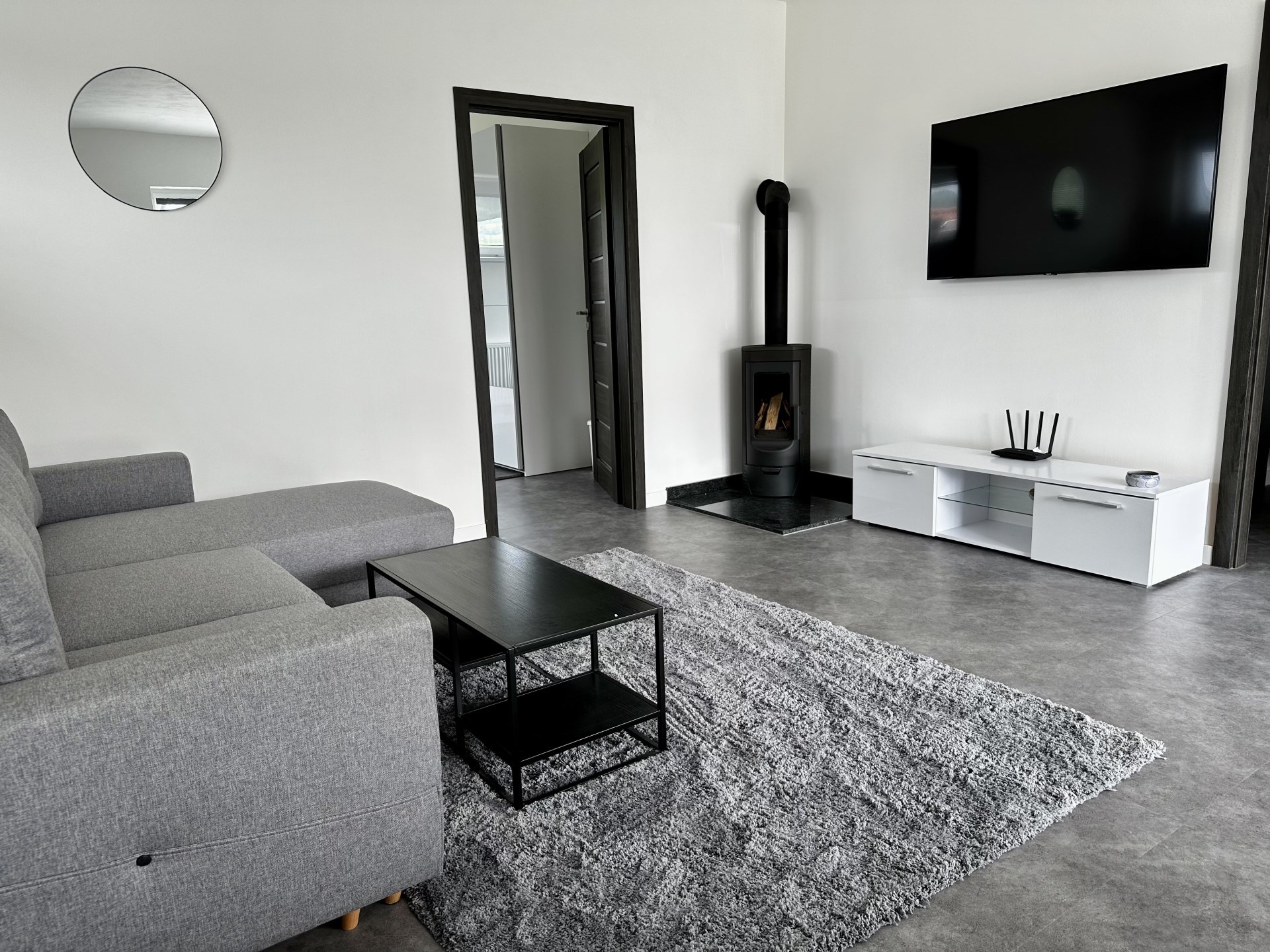 Dvoulůžkový apartmán (54 m2) s terasou a krbovými kamny.
