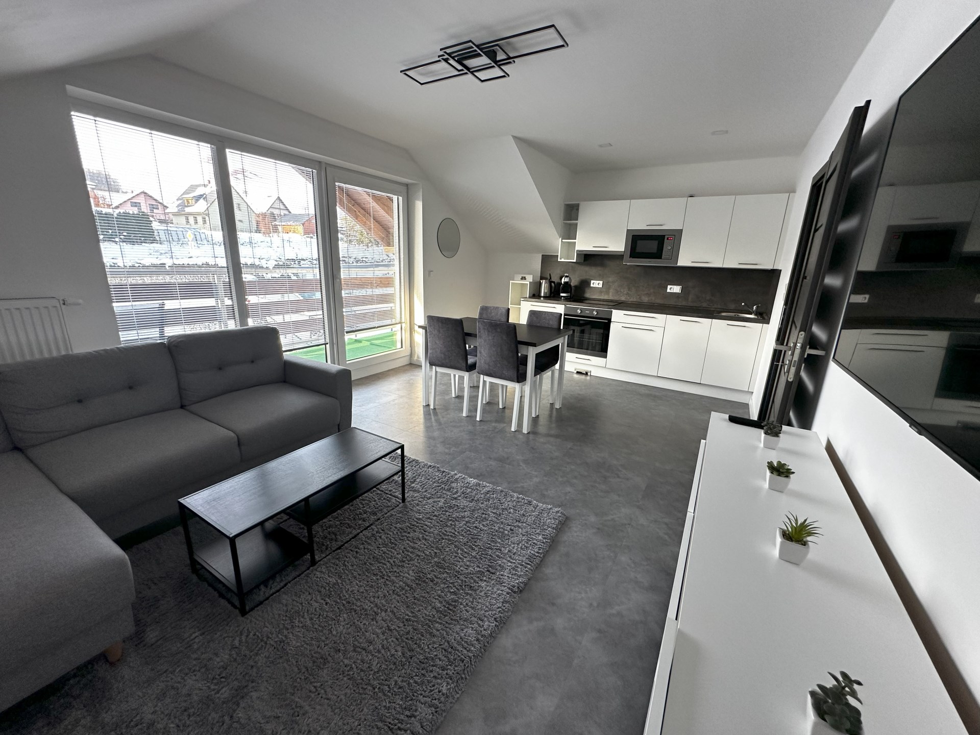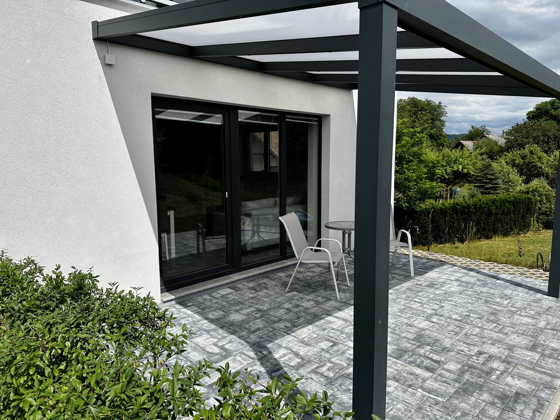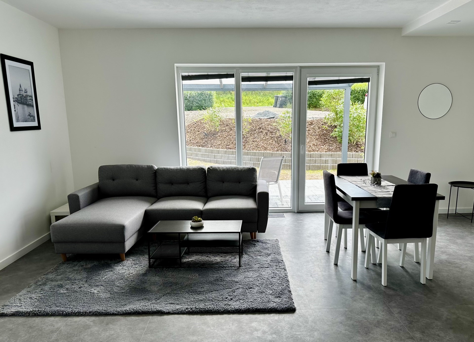 Nové moderní apartmány Vám nabízí zastřešenou terasu s venkovním posezením, prostorný obývací pokoj, vybavenou kuchyňskou linku, samostatnou ložnici s manželskou postelí, koupelnu se sprchovým koutem a WC.